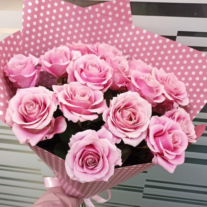роза россия розовая 70 см – 15 шт.Упаковка дизайнерская – 3 шт.Лента атласная – 1 шт.