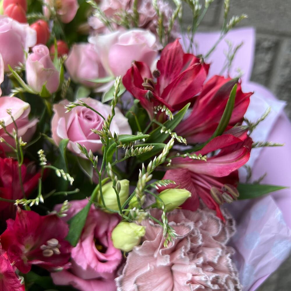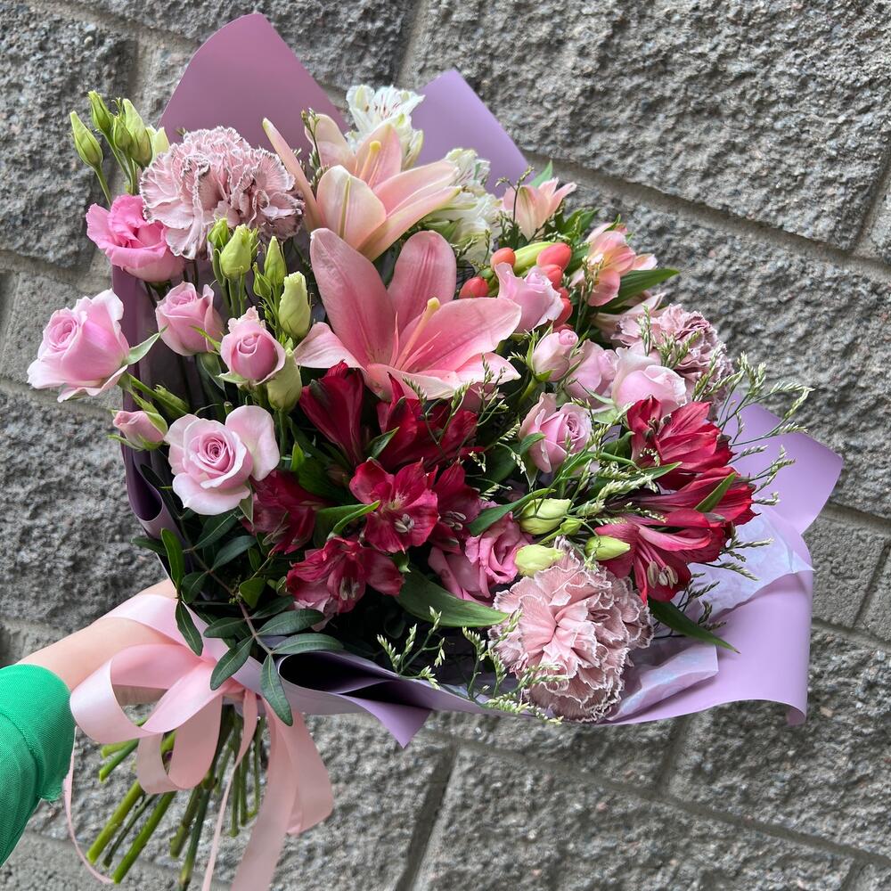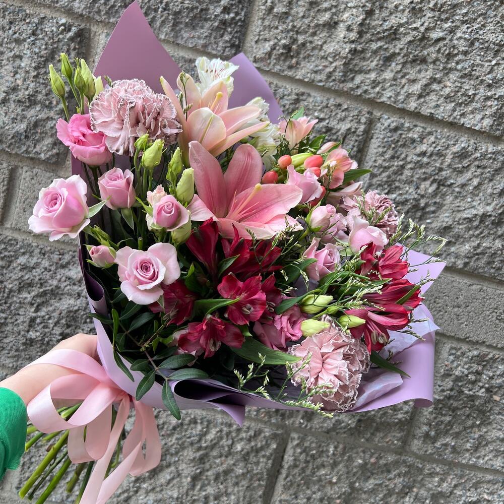Категорий: Альстромерии, Гвоздики, Кустовые розы, Лизиантусы, Лилии, Розы