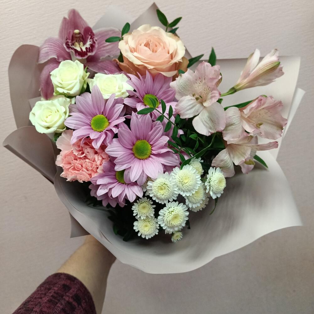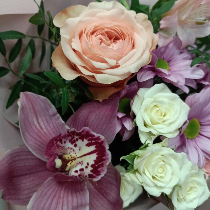 Категорий: Альстромерии, Гвоздики, Кустовые розы, Орхидеи, Розы, Хризантемы
