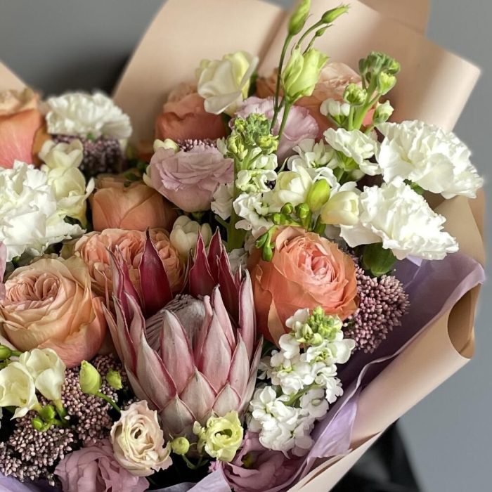 Букет с протеей и пионовидной розой Kahala XL