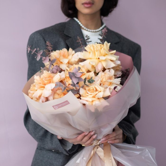 Альстромерии, Кустовые розы, Лизиантусы, Пионовидные розы, Розы, Ромашки