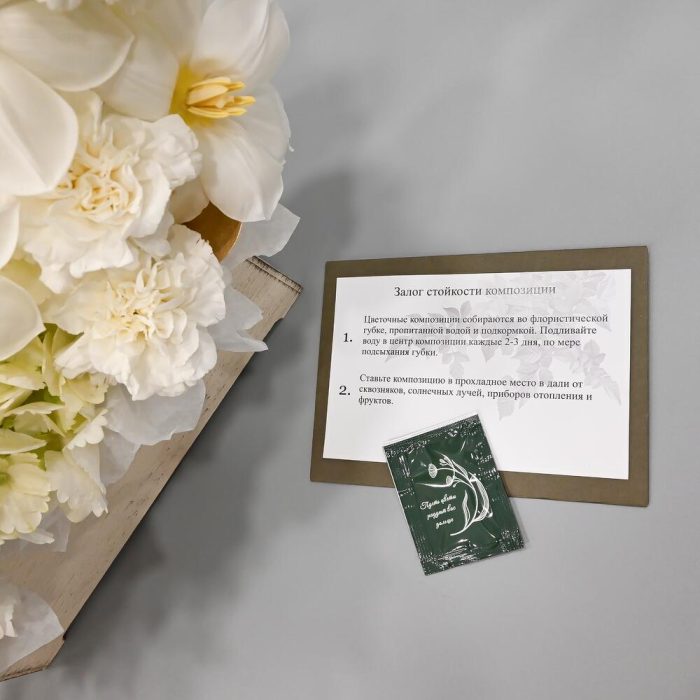 - Сроки возврата: Претензии по качеству букета принимаются в течение 24 часов с момента его получения.