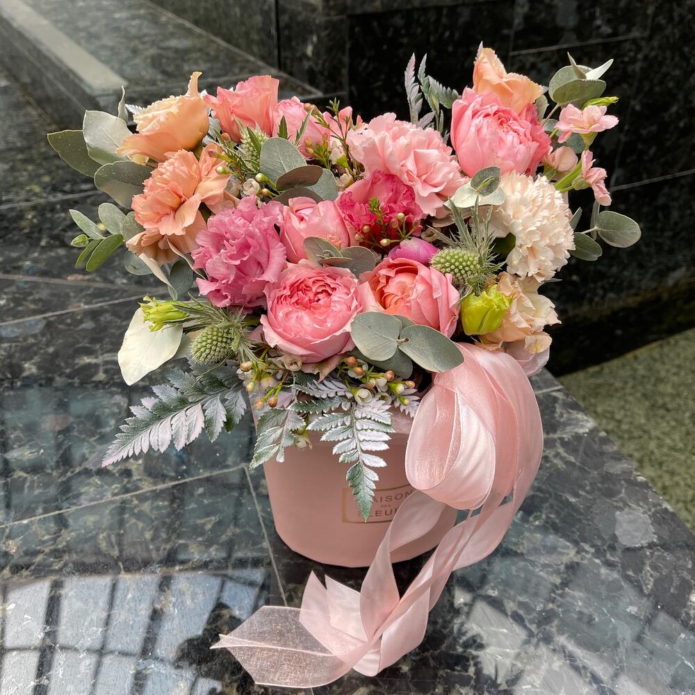Прекрасная композиция в шляпной коробке (При заказе просьба обратить внимание на размеры товара)