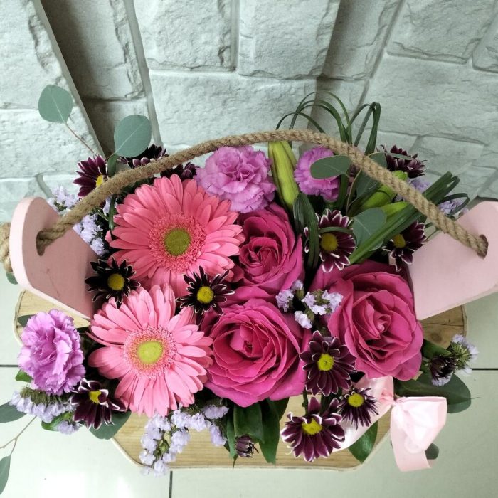 Цветы в декоративном ящике