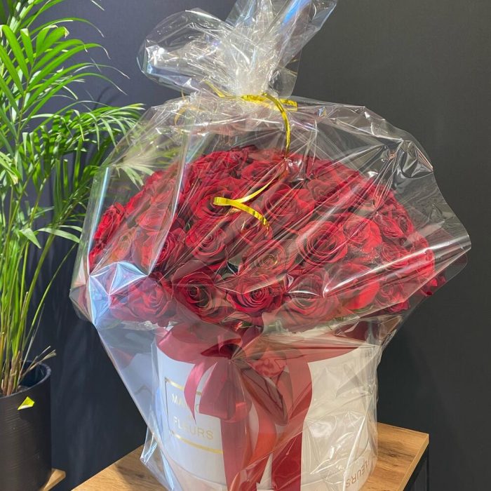 Метки: 101 роза, от 5000 руб, Роза 30 см, Розы в коробке, цветы в коробке
