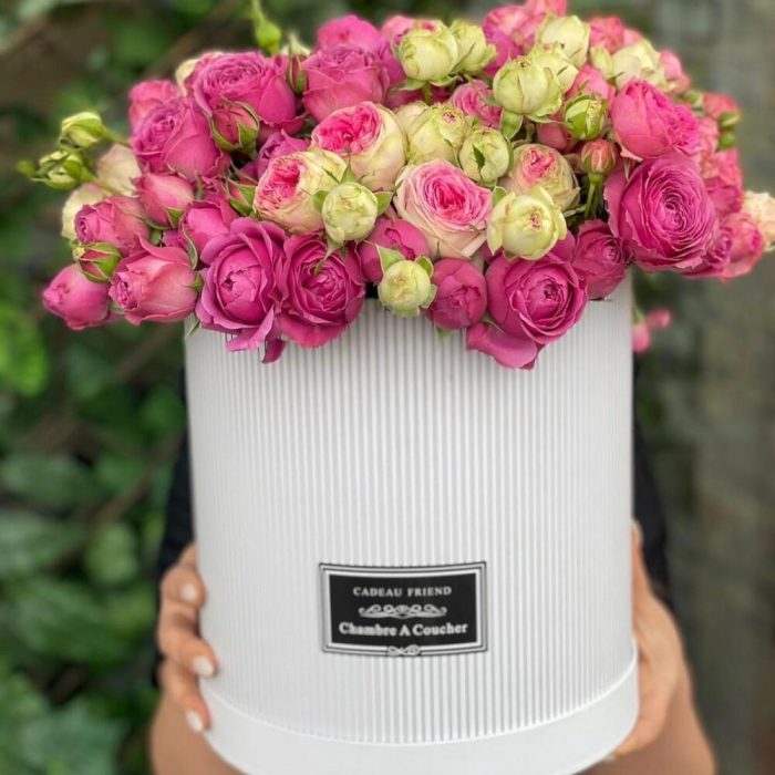 Коробка ‹VICTORIA› с кустовыми пионовидными розами - Latona Flowers