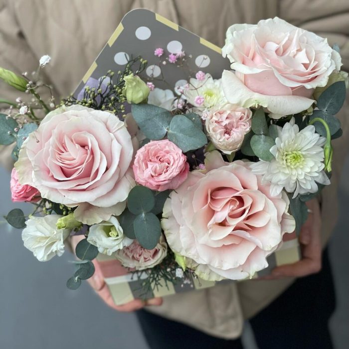 Цветы в коробке «Цветочное послание»
