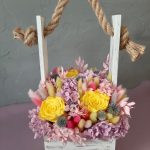 “Атлас☁️” – цветочная композиция с зефиром в деревянном ящике