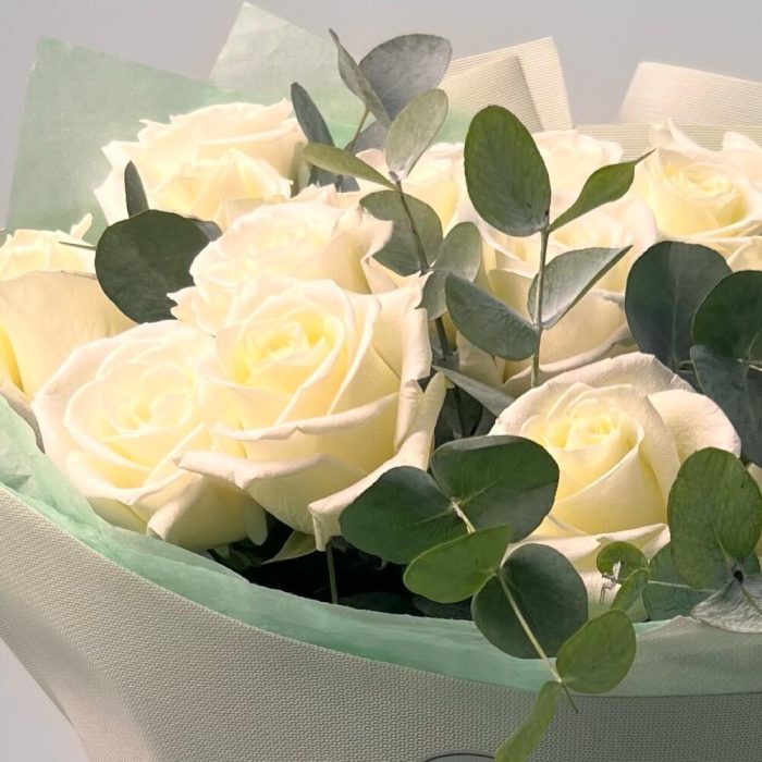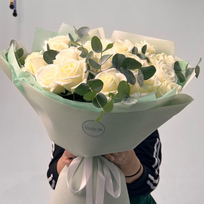 Голландская роза – 21 шт. Эвкалипт – 4 шт.