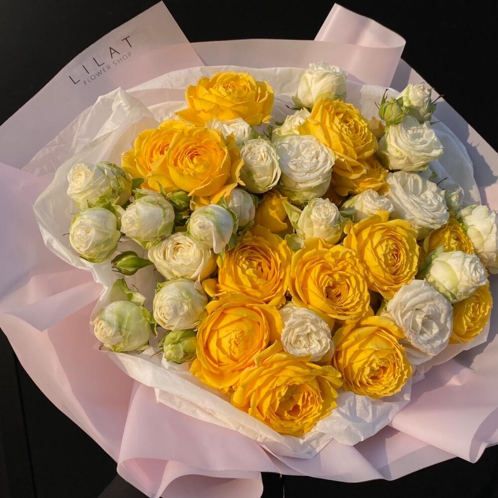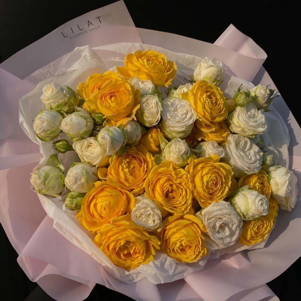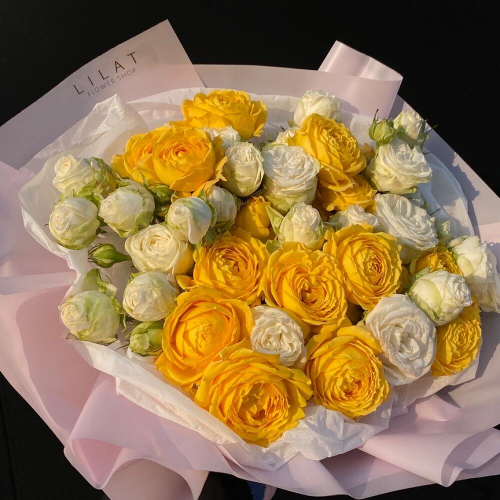 Кустовые розы, Лизиантусы, Пионы, Розы, Хризантемы