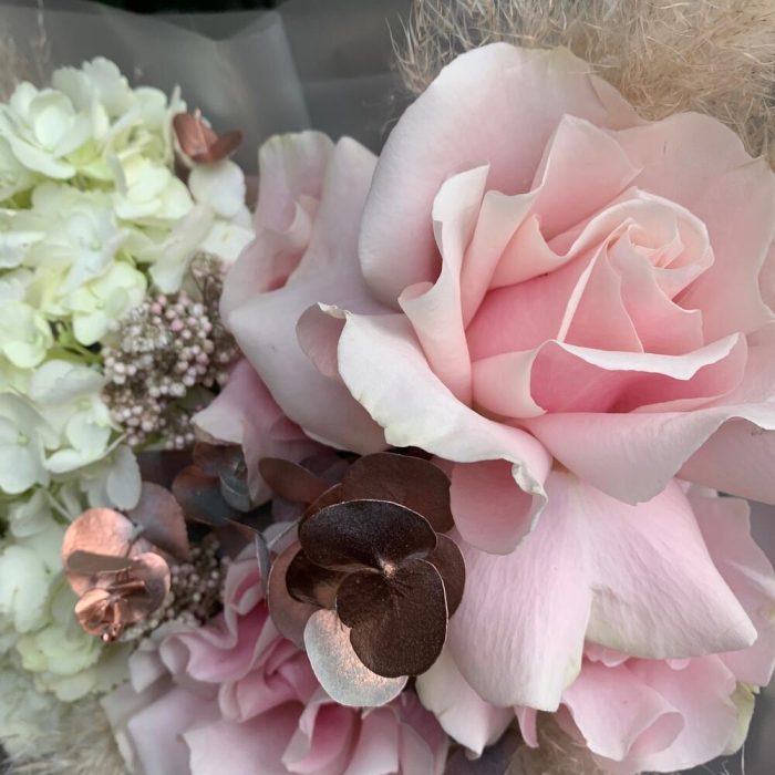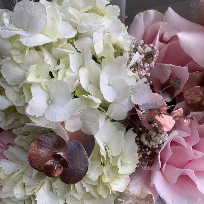 Озотамнус – 2 шт.Лента атласная – 1 шт.Гортензия белая – 2 шт.Упаковка дизайнерская – 1 шт.Кризал (подкормка) – 1 шт.Аквапак – 1 шт.Транспортировочная коробка – 1 шт.Роза pink mondial – 6 шт.инструкция по уходу за цветами – 1 шт.эвкалипт cineria пучок – 1 шт.сухоцвет пучок – 6 шт.