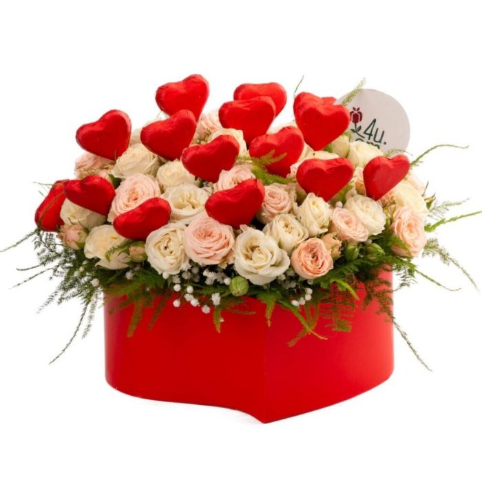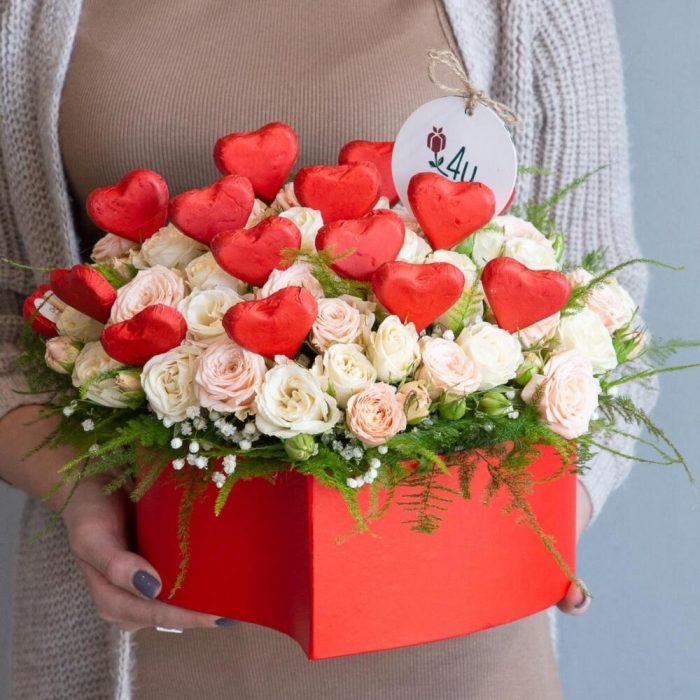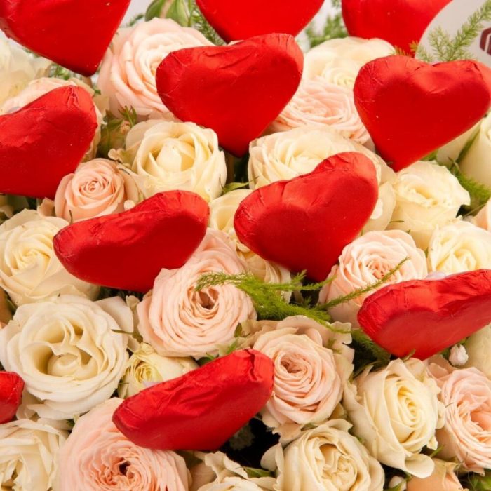 Кустовая роза – 7 шт. Конфеты – 15 шт.