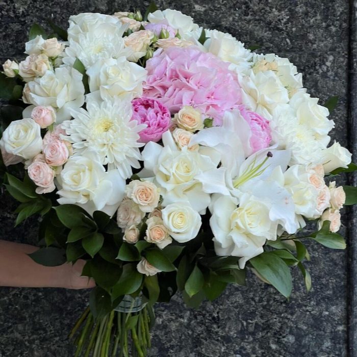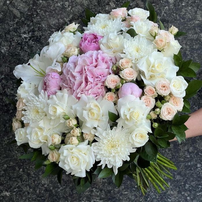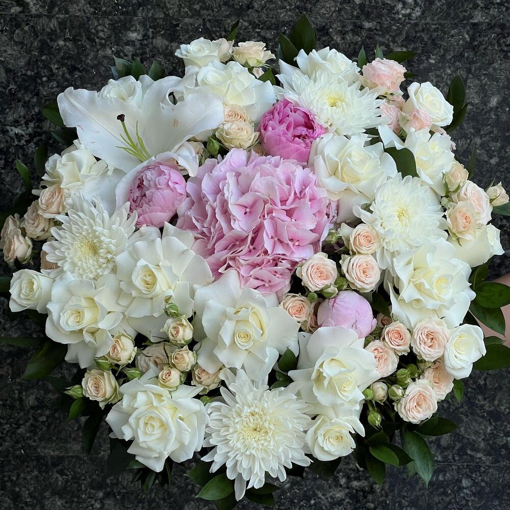 Альстромерии, Кустовые розы, Лизиантусы, Пионовидные розы, Розы, Ромашки