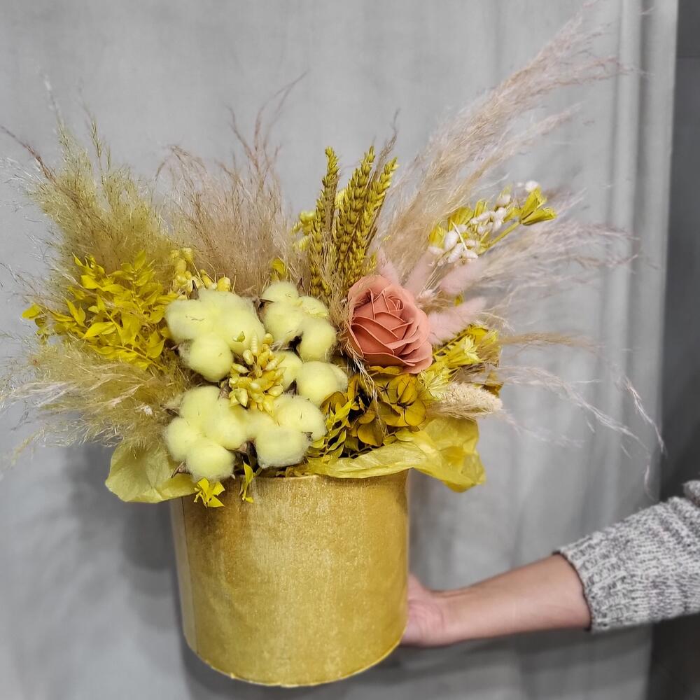 Композиция из сухрцветов в кашпо