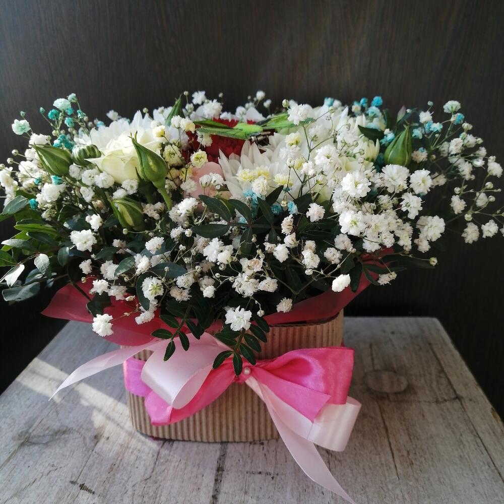 Категорий: Гвоздики, Гипсофила, Кустовые розы, Розы, Хризантемы
