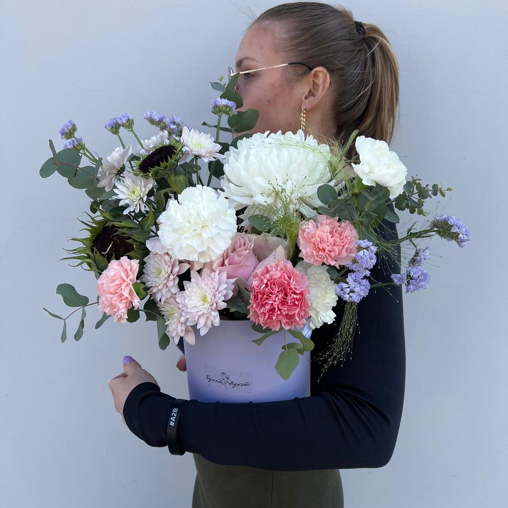 Коробка «Актрисе» (хризантемы, диантусы