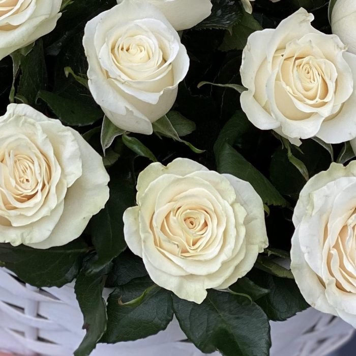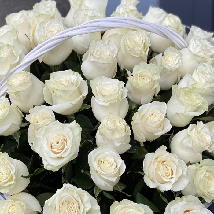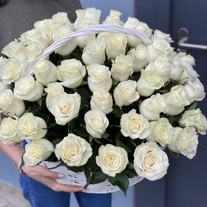 Метки: Белые розы, от 5000 руб, Роза Роза 40 см, Розы в корзине, цветы в корзине