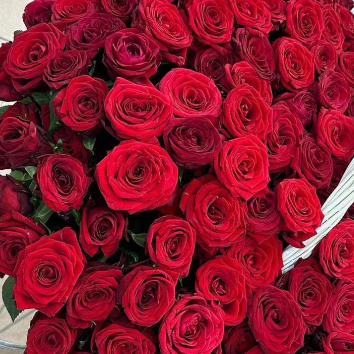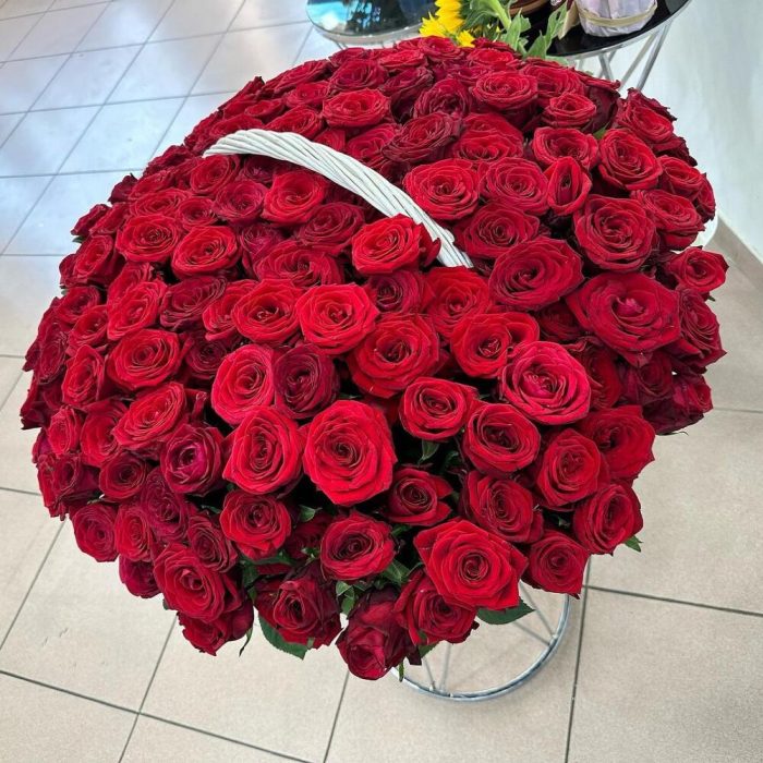 Корзина плетеная – 1 шт. розы голландские – 151 шт.