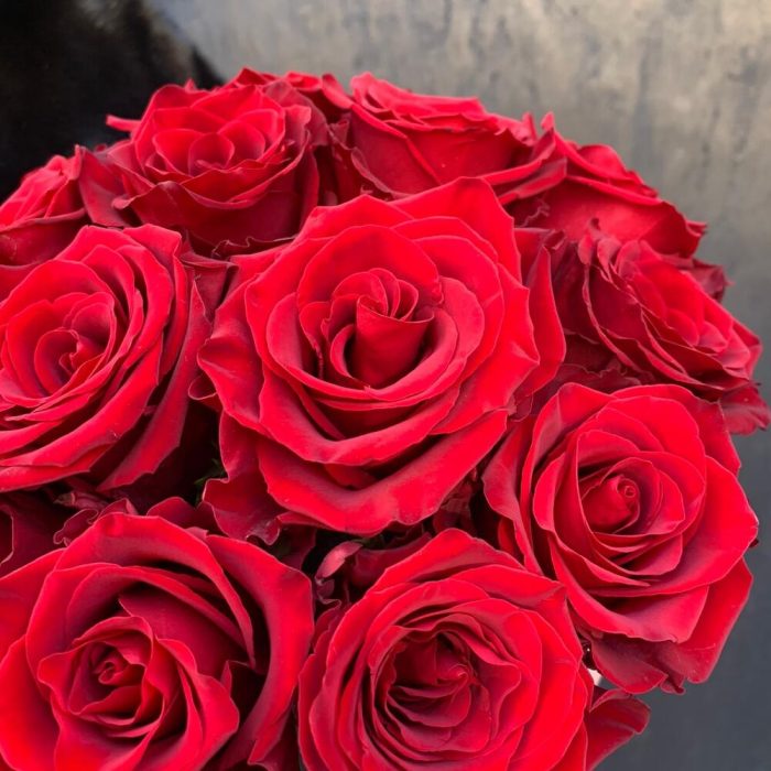 Красные розы в шляпной коробке