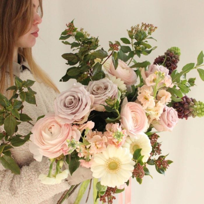 Кружева – Ранункулюсы, маттиола и герберы