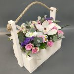 “Атлас☁️” – цветочная композиция с зефиром в деревянном ящике