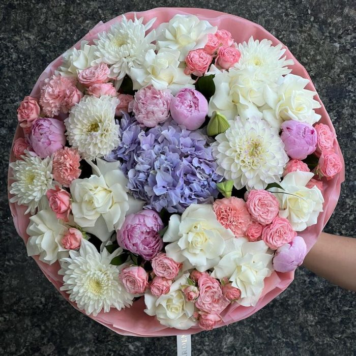 Категорий: Гвоздики, Георгины, Гортензии, Лилии, Пионовидные розы, Пионы, Розы, Хризантемы