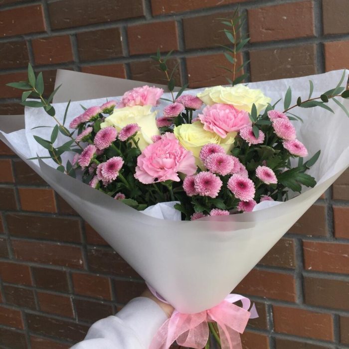 Категории: Гвоздики, Кустовые розы, Розы, Хризантемы