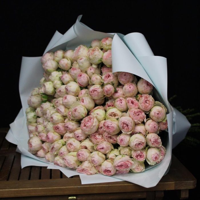 менсфилд парк кустовая пионовидная – 35 шт.Пленка матовая – 3 шт.Лента атласная – 2 шт.
