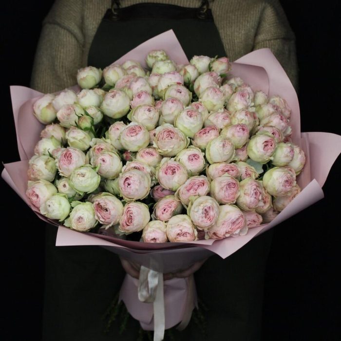 менсфилд парк кустовая пионовидная – 25 шт.Пленка матовая – 5 шт.Лента атласная – 2 шт.