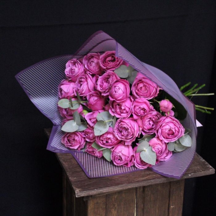 mono bouquet 43 из 11 пионовидных роз сорта Julietta с эвкалиптом