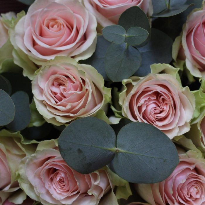 mono bouquet 67 из 11 роз сорта frutetto с эвкалиптом