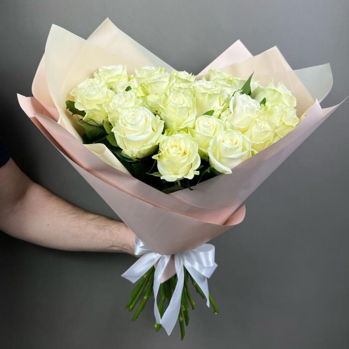 Лента атласная – 1 шт.Тишью – 1 шт.Калька – 1 шт.Роза мондиаль 70 см – 25 шт.