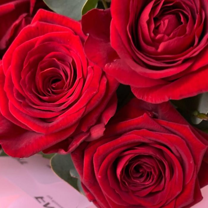 Монобукет из красных роз и эвкалипта