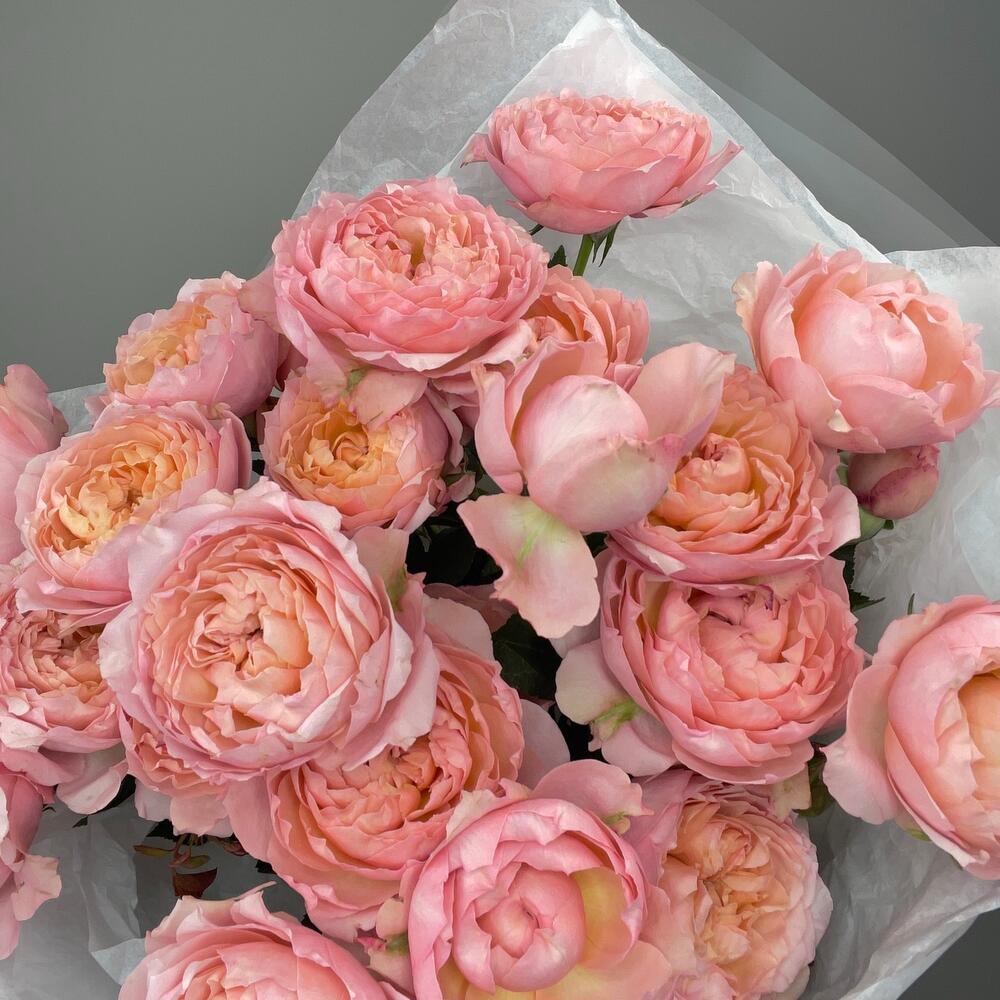 Букет из пионовидной кустовой розы и эвкалипта Кэмирон Макси