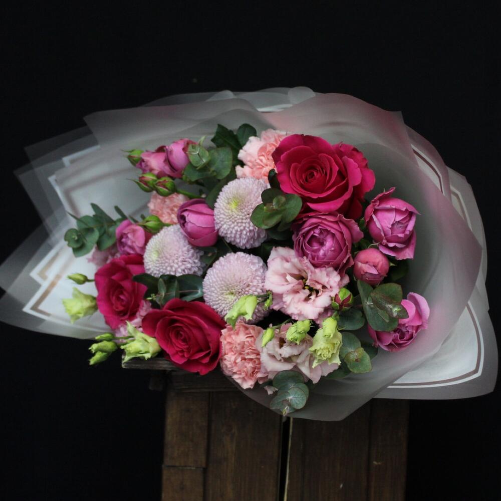 Категорий: Гвоздики, Кустовые розы, Лизиантусы, Пионовидные розы, Розы, Хризантемы