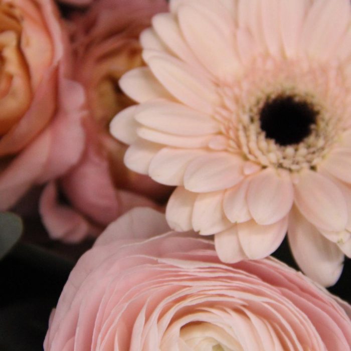 Лизиантус – 3 шт.Гербера – 5 шт.Роза кустовая пионовидная – 4 шт.Эвкалипт – 9 шт.Упаковка дизайнерская – 2 шт.Ранункулюс – 5 шт.Упаковка – 1 шт.