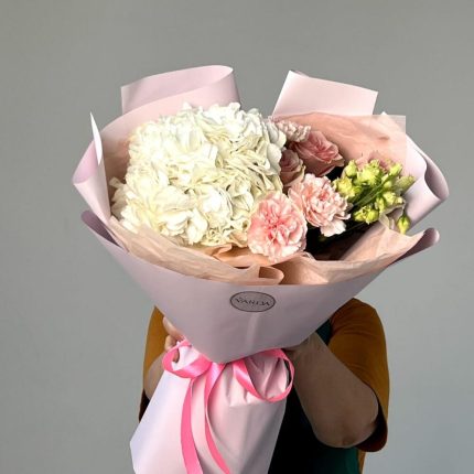 Альстромерии, Гортензии, Кустовые розы, Лизиантусы, Розы, Хризантемы