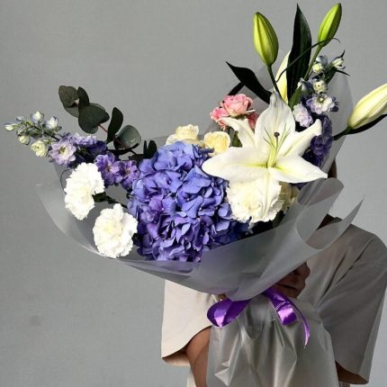 “Эвкалиптическая роскошь” гортензия и пионовидная кустовая роза