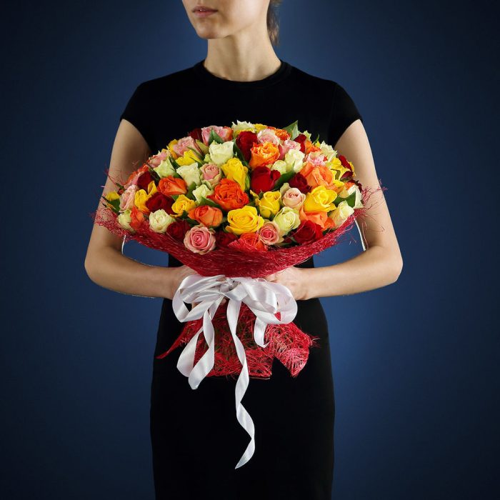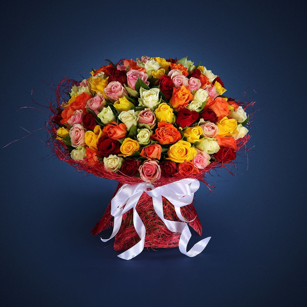 Роскошный букет из 101 красной розы. Букет 158 ALMOND ROSES