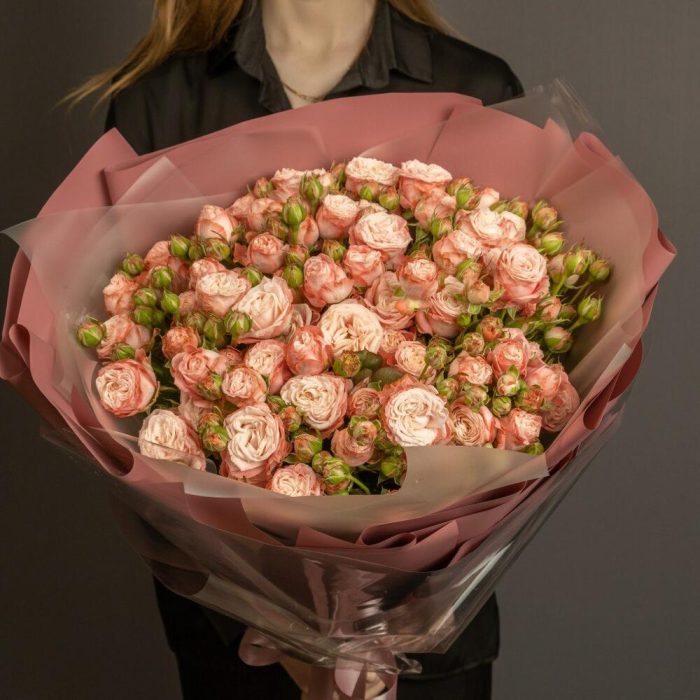 25 пионовидных розовых роз