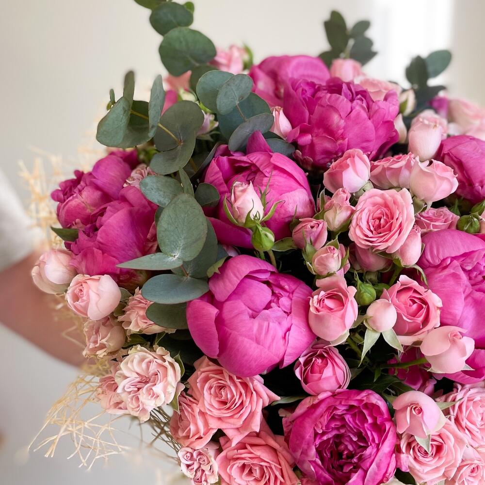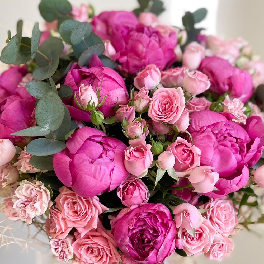 Кустовые розы, Лизиантусы, Пионы, Розы