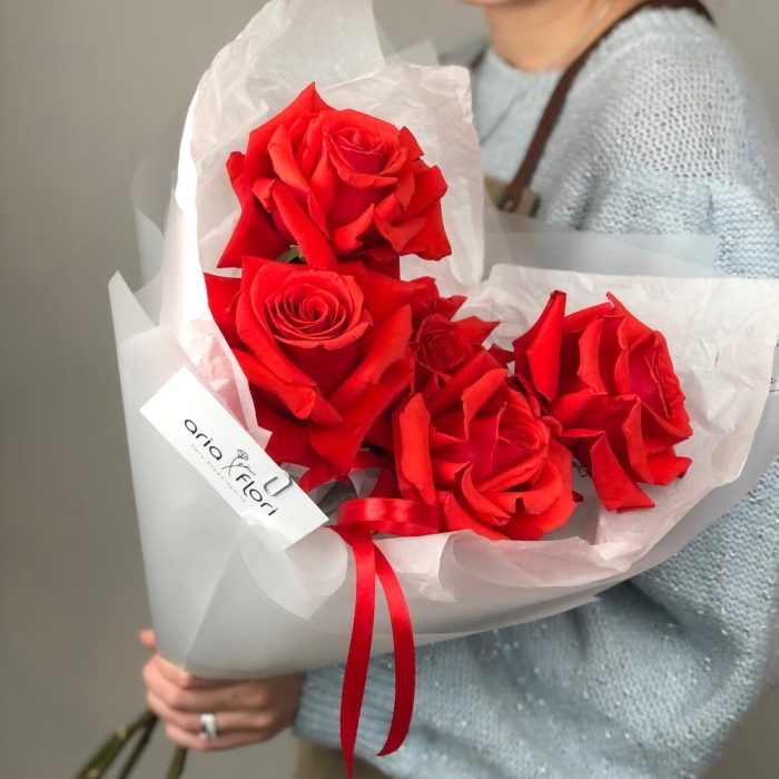 Роза Эквадор – 5 шт.Упаковка дизайнерская – 1 шт.подкормка для срезанных цветов – 1 шт.советы по уходу за срезанными цветами – 1 шт.записка с вашим текстам – 1 шт.любовь флориста – 1000 шт.