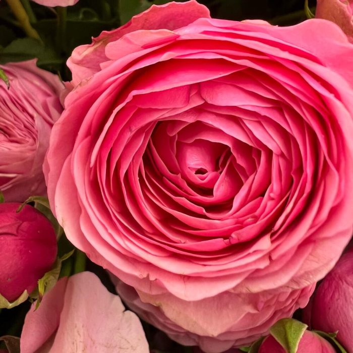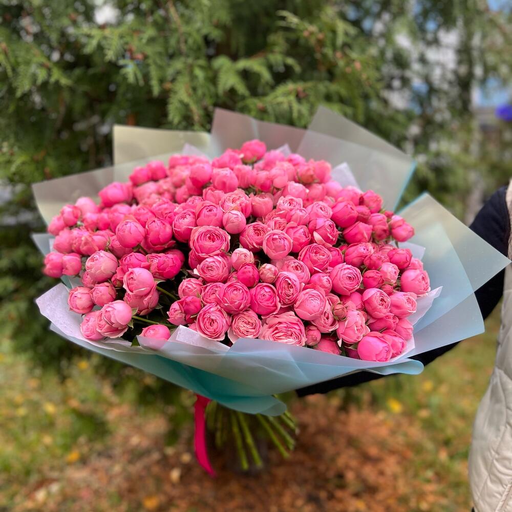 Шикарный букет из кустовой пион розы. Это прекрасный ярко розовый цветок, с прекрасным раскрытием. Розы после раскрытия напоминают пион, по этому и получили название пионовидные розы. Если доставка вам нужна срочно, то напишите нашим менеджерам и мы отправим букет максимально быстро .