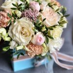 Готовый букет может немного отличаться от образца на фотографии, ведь каждая композиция уникальна. Наши флористы тщательно подходят к подбору цветов и прикладывают все усилия для того, чтобы цветовая гамма и форма букета максимально соответствовали образцу.