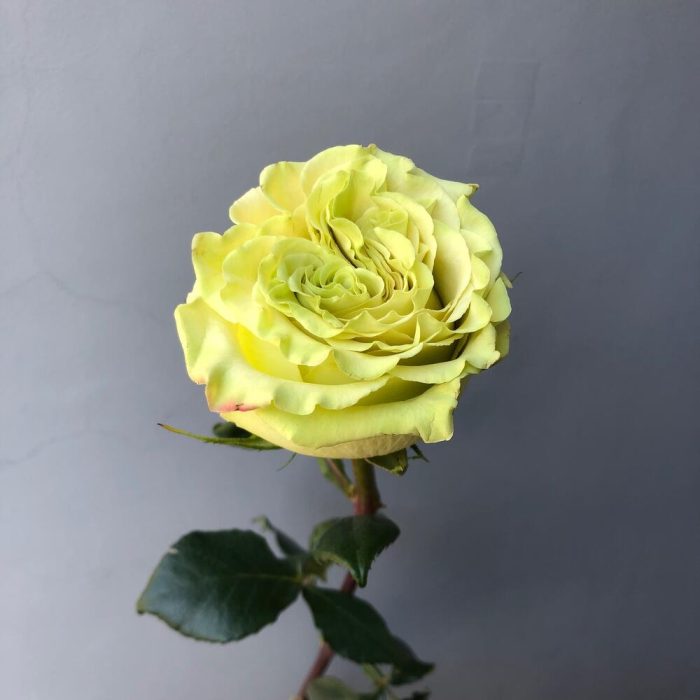 Пионовидная Роза Лимонад – роза с крупными чашевидными бутонами, которые собраны из огромного количества волнистых лепестков нежно салатового цвета с кремово-белой серединой. Обладает легким сладким «лимонадным» ароматом зеленого яблока.Высота 60-70см