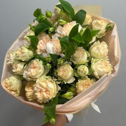 Пионовидная кустовая роза с легким цветочным ароматом.