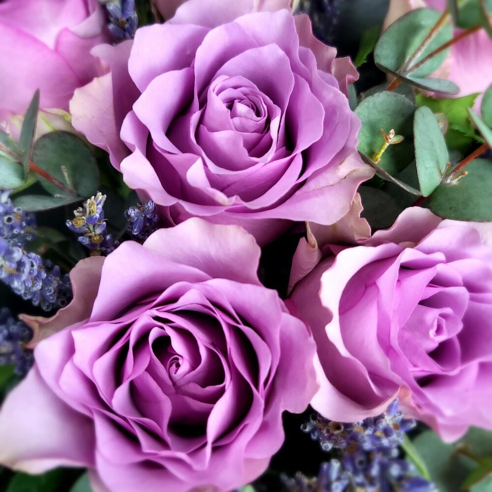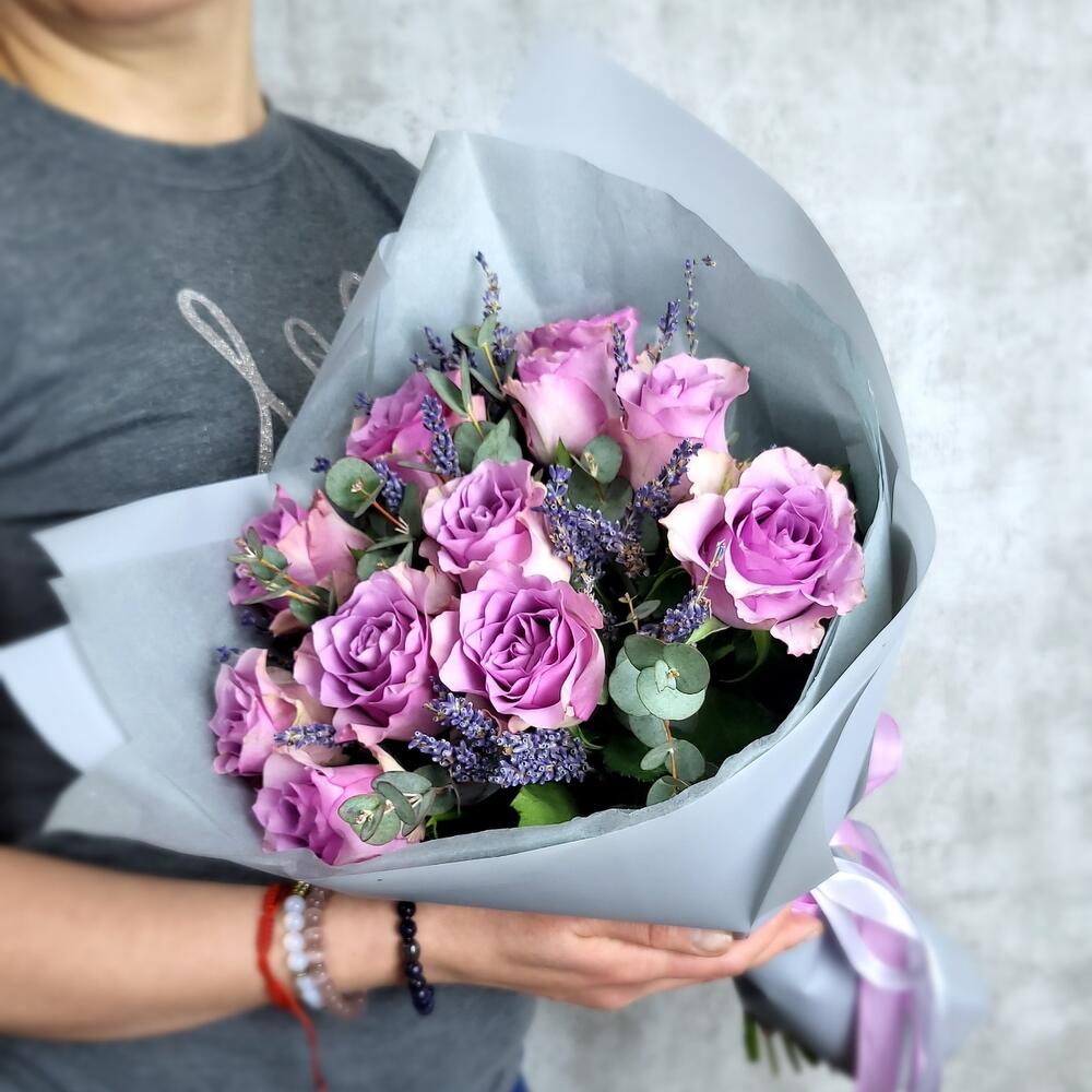 Лаванда – 1 шт.Эвкалипт – 1 шт.Роза Кенийская – 11 шт.