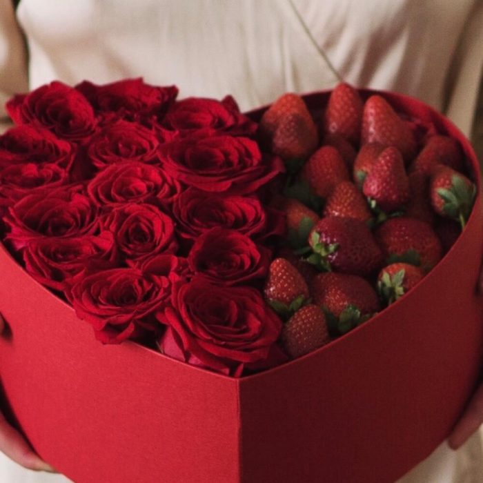 Коробка с клубникойКлубникаРозыКрасные розы