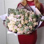 Роза – 51 шт.Эвкалипт – 5 шт.Крафт упаковка – 3 шт.