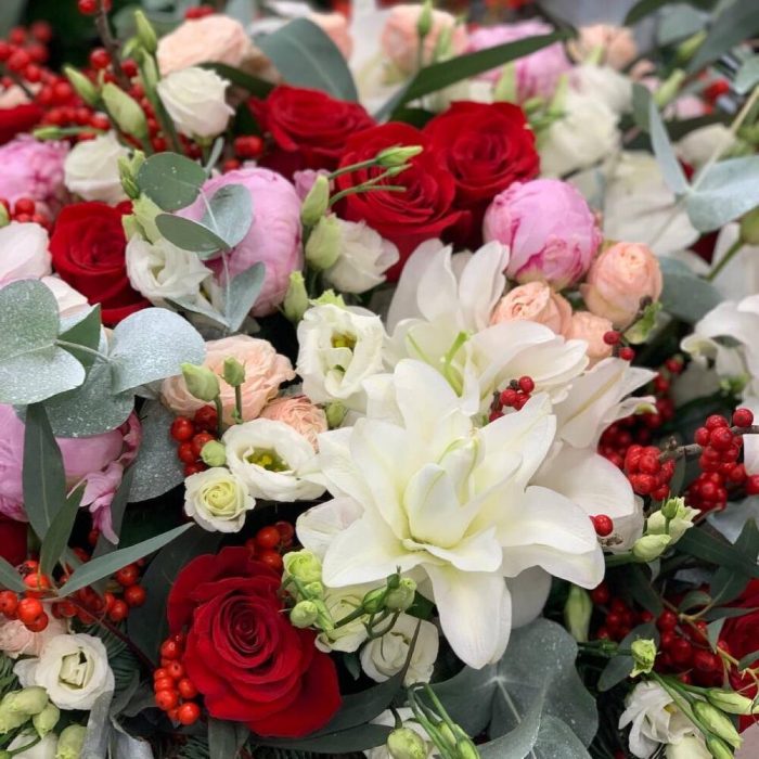 Гвоздики, Кустовые розы, Лизиантусы, Пионовидные розы, Розы